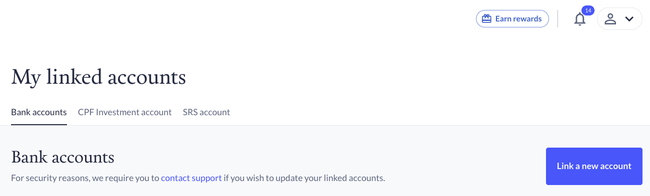 1. The first being through your Endowus account. Once you've logged into your Endowus account, select "Profile" > "Linked Accounts". You'll be able to add your new Bank account there.