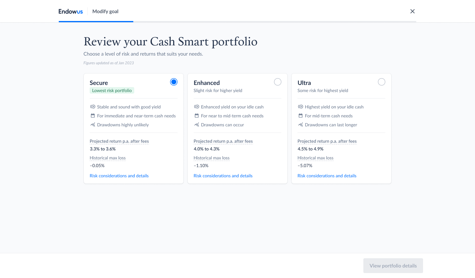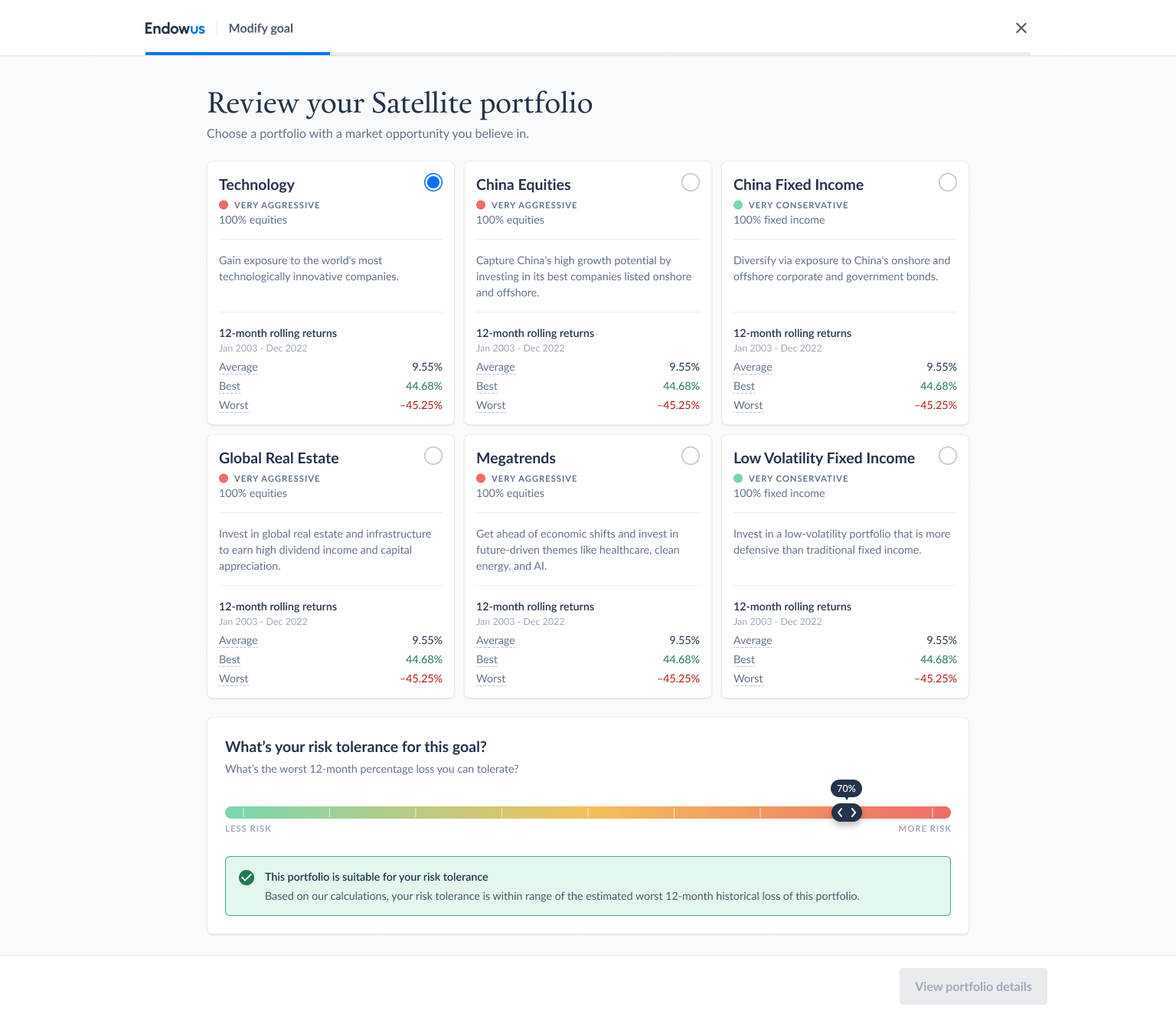 - Select your risk appetite for this goal and corresponding portfolio you would like to modify into